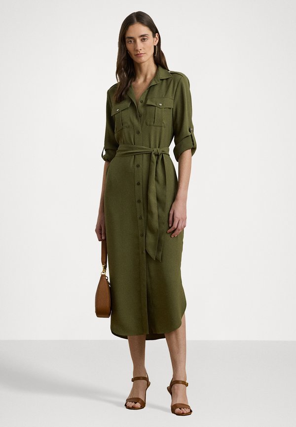 BELTED DOUBLE FACED GEORGETTE SHIRTDRESS - Shirt dress - olive grove 1