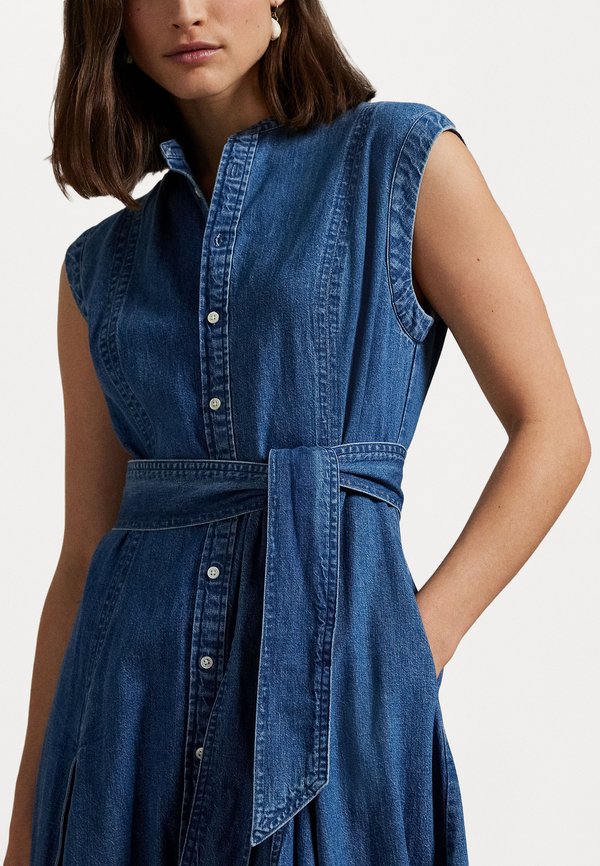 More information about BELTED DENIM SLEEVELESS A-LINE DRESS - Denim dress - indigo