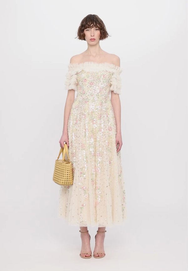 HOT ! CONFETTI RUFFLE OFF SHOULDER ANKLE GOWN - Occasion wear - cream