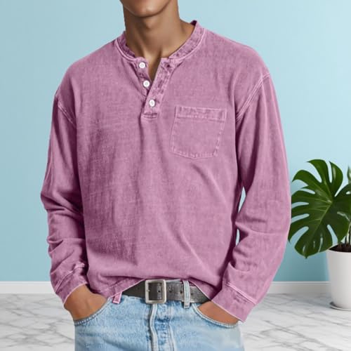 Mokaloha Mens Shirts, Mokaloha Mens Shirts Long Sleeve, Men's Retro Casual Solid Color Long Sleeve Henley with Pockets 6