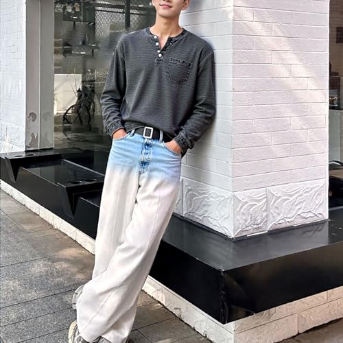 HOT ! Mokaloha Mens Shirts, Mokaloha Mens Shirts Long Sleeve, Men's Retro Casual Solid Color Long Sleeve Henley with Pockets