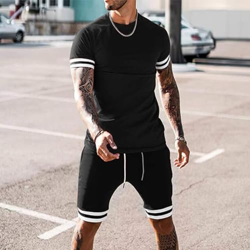 HOT ! Mens Short Sets 2 Piece Outfits Fashion Short Sleeve Summer Tracksuits Casual Set with Pockets