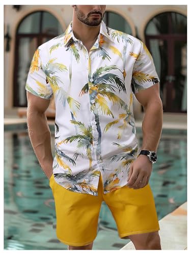 HOT ! GORGLITTER Men's Summer Vacation Outfits Hawaiian Beach Floral Button Down Short Sleeve Shirt and Shorts Set