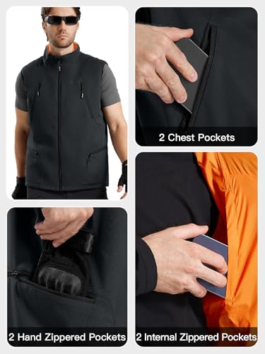 • Reversible Design: This fleece-lined softshell vest offers the versatility of two different looks in one, you can switch up your style effortlessly. We design the other side with black and orange color for your choice. If you are going out for some adventure activities, you can choose orange,high visibility safety vest, which can make you more noticeable when hunting or other occasions, so that you and your friends can be conspicuous and easily identified
