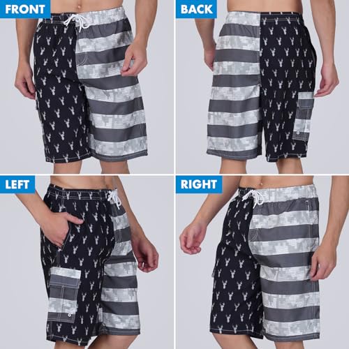HOT ! North 15 Men's American Flag Microfiber Swim Trunk Boardshorts with Cargo Pocket