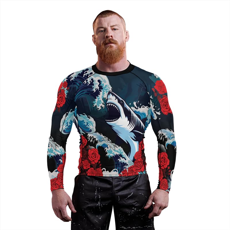 Shark Rash Guard BJJ Long Sleeve Men's Compression Shirt for MMA Jiu Jitsu No Gi Grappling 6