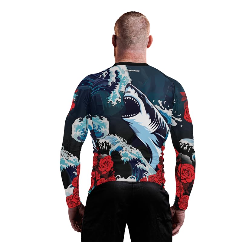 Shark Rash Guard BJJ Long Sleeve Men's Compression Shirt for MMA Jiu Jitsu No Gi Grappling 4