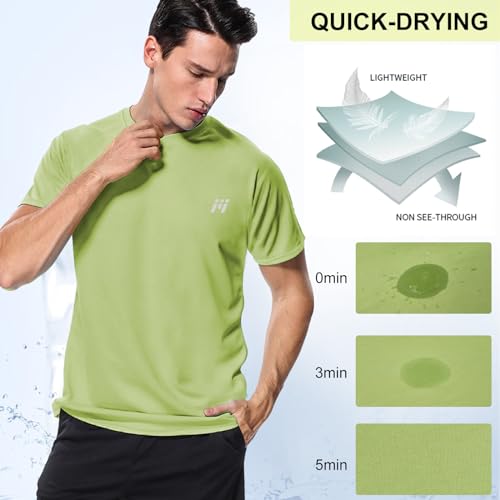 • 【Quick Dry and Moisture Wicking】Mens workout t shirts make breathe freely and dry quickly. The gym tee shirts pull heat away and wicks moisture away from skin and remove unpleasant smell for a cooling effect that help you workout longer.