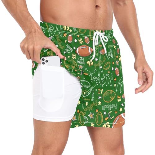 Mens Swim Trunks Football Sports Swim Shorts Quick Dry Beach Shorts with Compression Liner and Zipper Pocket, L 1
