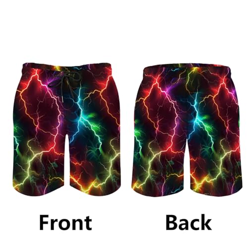 HOT ! Colorful Lightning Men's Swim Trunks Cool Lightning Summer Swimming Shorts Fantasy Lightning Bolt Bathing Pants