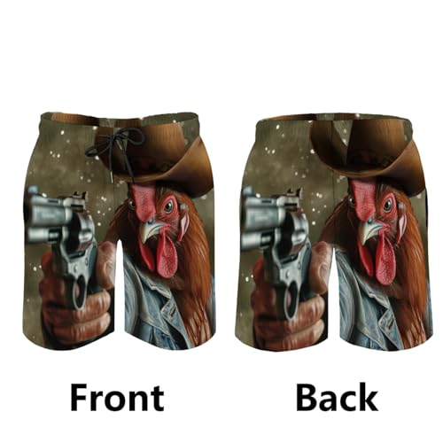 Funny Rooster Men's Swim Trunks Cool Chicken Summer Surfing Shorts Cowboy Hunter Drawstring Swimsuit with Pockets 1