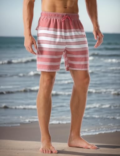 Men's Surf Shorts Striped Relaxed Fit Soft Washed Drawstring Beach Trunk 7