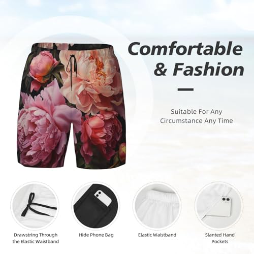 More information about Garden Peony Built-in Compression Lining Men's Double Swim Trunks Shorts Beach Shorts with Two Pockets
