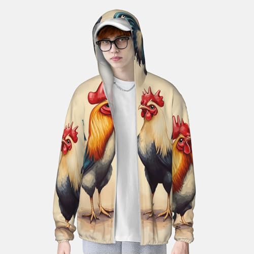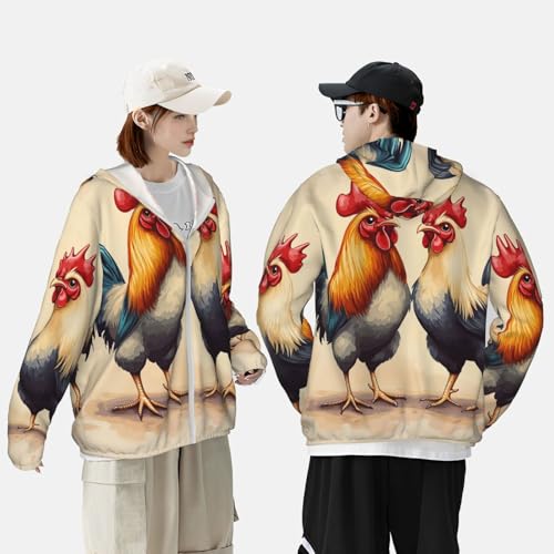• UV Protection: Our Rooster and hen long sleeve sun shirts features cutting-edge UPF 50+ technology, effectively blocking UV rays to ensure robust sun protection during your outdoor adventures. Designed with a hood to protect the neck, and other sun-exposed areas. Ideal for extended outdoor activities