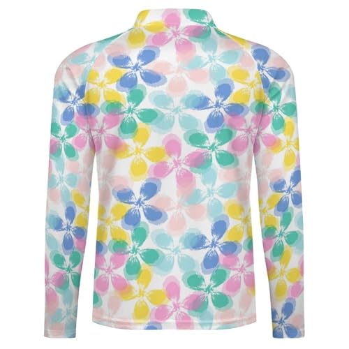 Mens Long Sleeve Mesh Fishing Shirts Tie Dye Leaf and Flower Rash Guard Fishing Running Tshirt Sun Protection Tee 6