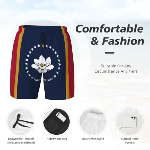 Mississippi State Flag Breathable Fit Trends Men's Swim Trunks Board Short with Waist Elastic Band Swimming Trunks 6