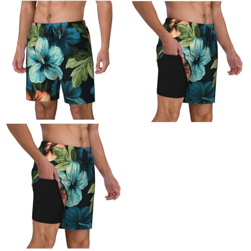 Men's Swim Trunks Quick Dry Board Shorts Hibiscus Flowers Pattern Beach Shorts with Pocket Bathing Suits for Men 5