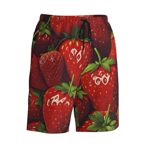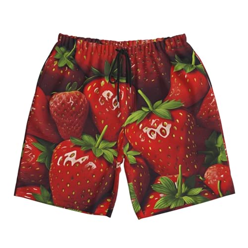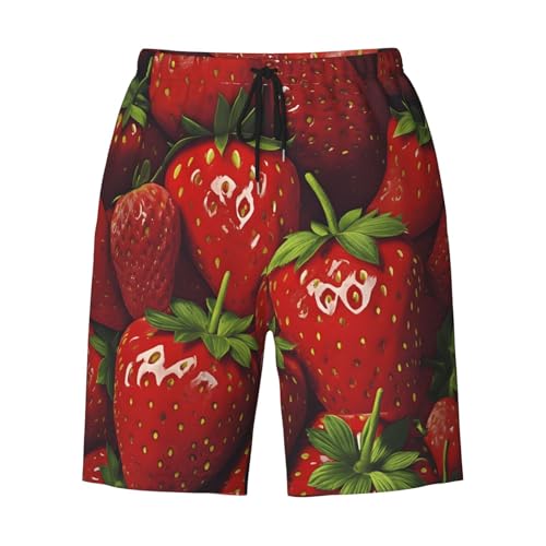 HOT ! Red Strawberry Fruit Print Men's Beach Pants Lightweight Quick-Dry Swim Pants with Mesh Lining for Men