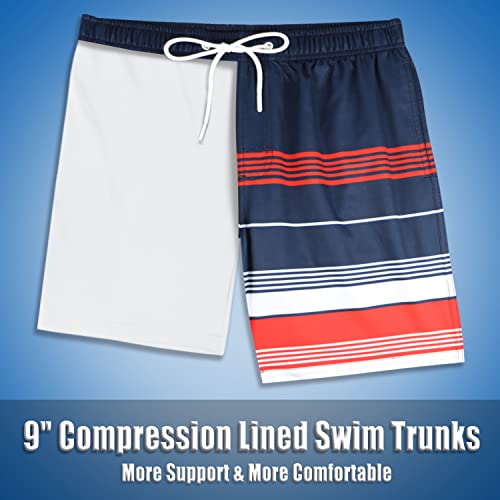 QRANSS Mens Swimming Trunks with Compression Liner 9'' Quick Dry Long Swim Shorts Swimwear Boardshorts with Boxer Brief Liner 2