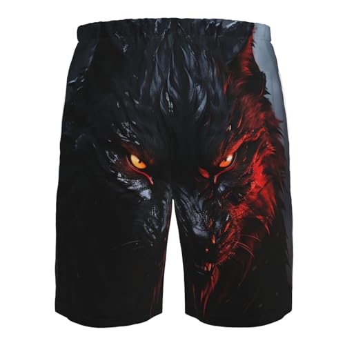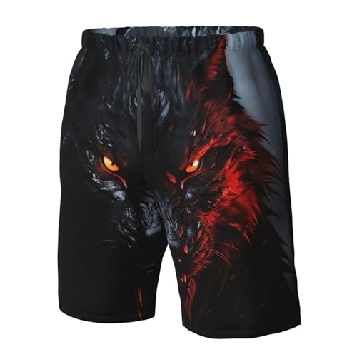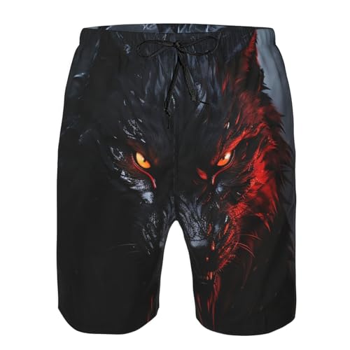 HOT ! Men's Swim Trunks Quick Dry Board Shorts Mens Bathing Suit Swimsuits Big Black Wolf with red Eyes Beach Shorts with Pockets