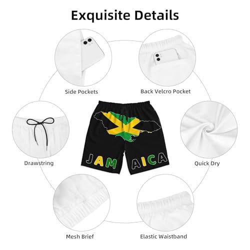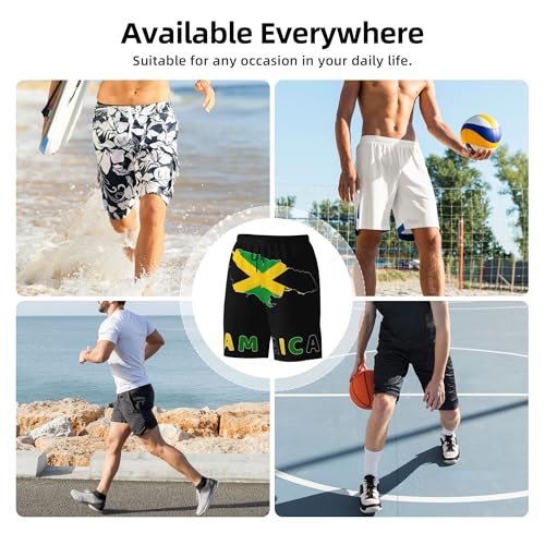• PATRIOTIC SHORTS FOR MEN - Jamaica Map Flag men's swim shorts is made of high quality 100% polyester, quick dry fabric provides the good ability of water repellent (not waterproof), lightweight, breathable, soft, comfort and skin-friendly. The casual fit with nice fabrication keeps you dry and flexible workout all day, perfectly matched with vest, t-shirt, shirt etc