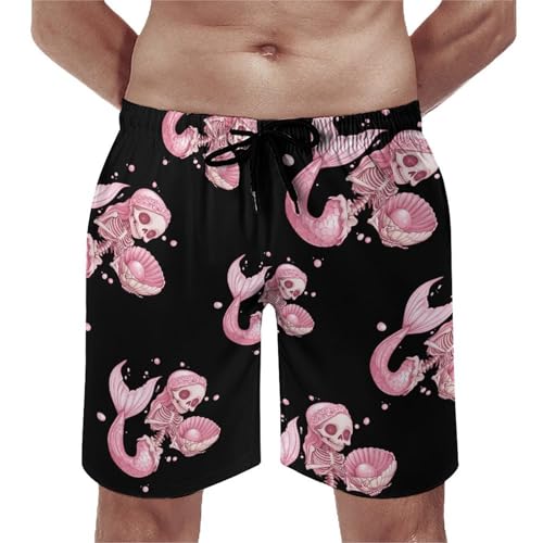 Skeleton Mermaides Mens Swim Trunks Quick Dry Board Shorts Beach Swimwear Bathing Suits 1
