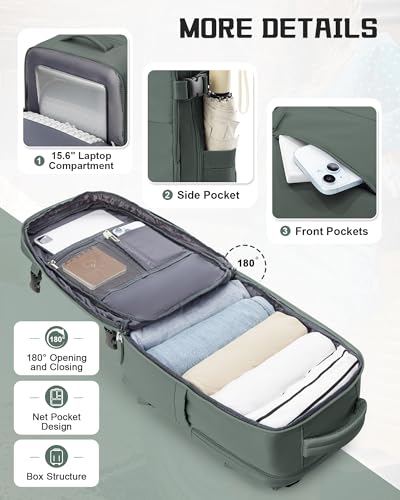 wepadre Travel Backpack Carry on Flight Approved Carry on Backpack for Airplanes Personal Item Travel Bag 18x14x8 Inches Traveling Backpack for Men Women Mochila de Viaje Olive Green 4