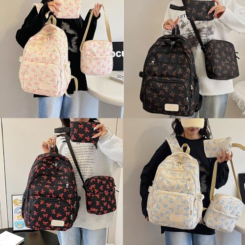 APLUSH 3Pcs Bow Backpack Set,Large Capacity Nylon Material Cute Daypack Set,Aesthetic Bow Rucksack with Built-In Organizer,White 1 1