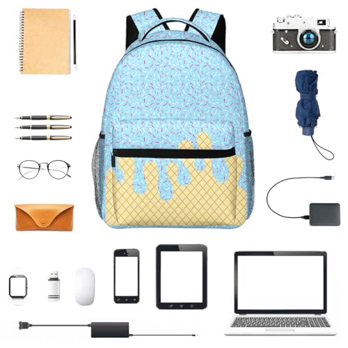 Ice Cream Drip Backpack Kawaii Shoulder Bag,Icecream Backpackdrip Lightweight Daypack for Women Men Bags Travel Hiking-Light blue 1