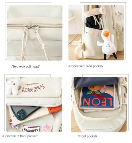 Cute backpack with accessories kawaii 5PCS Set Aesthetic Waterproof backbags (Red) 4