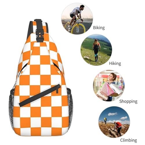 Dyale Orange White Checkered Pattern Fashionable, Portable, And Large Capacity Men'S Casual Cross Chest Bag 6