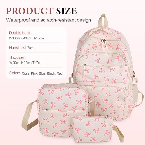 Bow Backpack for Women, 2025 New Bow Backpack Bags Set, Cute Kawaii Backpack Set, Coquette Nylon Backpack With Bow Pattern (Pink) 4