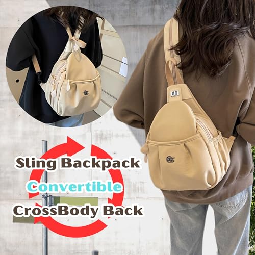 • [Material] Nylon [Features] Convertible: can be used as crossbody sling bag & backpack with opening/closing zipper on strap