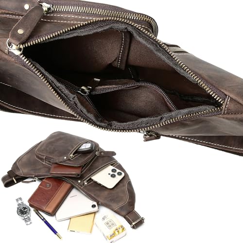 KPYWZER Genuine Leather Sling Bag for Men Women Shoulder Backpack Satchel Crossbody Chest Casual Outdoor Daypack 6