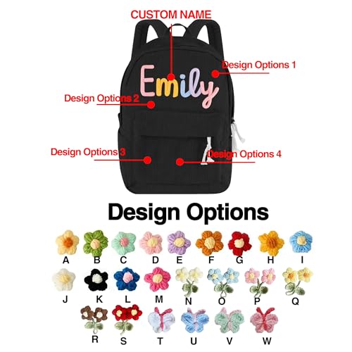 • 【Material】: Our cute rucksack daypack is made of premium corduroy material, which is lightweight, soft and comfortable. The corduroy material design collocated with a personalized name and flower pattern adds a playful touch, making it a great personalized backpack for women men