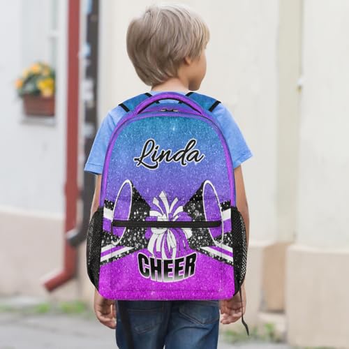 HOT ! Custom Large Capacity Cheer Backpack for Women, 16 Inch Personalized Cheerleader Casual Shoulder Daypack Bag, Purple Magenta Glitter