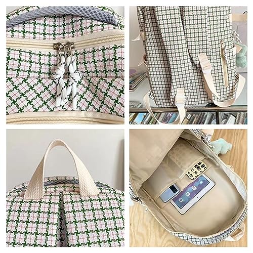 HOT ! Kawaii Backpack with Cute Accessories Plaid Book Bag Aesthetic Backpack Casual Daypack Checkered Preppy Backpack (Blue,One Size)