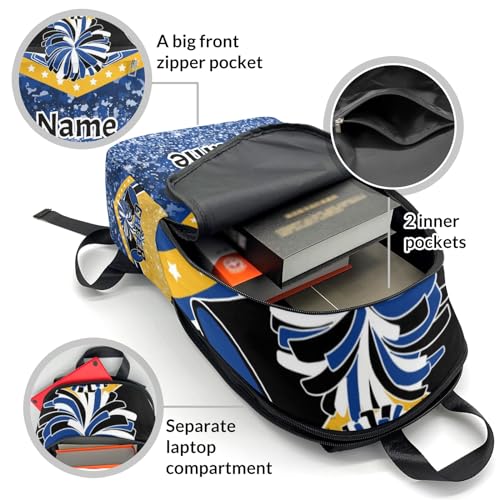 Blue Gold Cheer Cheerleader Backpack Casual Travel Daypack for Men Women Gif 4
