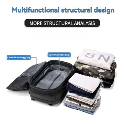• Expandable Capacity: This vacuum backpack travel with pump expands the pack to 60 liters, equivalent to a 24-inch suitcase. Its compact size (12.6 x 7.87 x 19.29 inches) makes it ideal for commuting and business travel