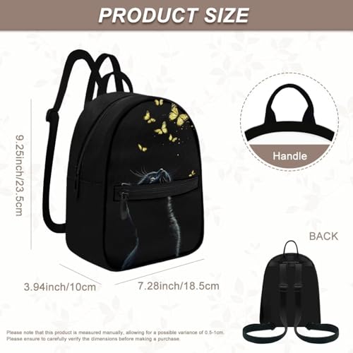 HUGS IDEA Black Cat Backpack for Women Butterfly Polyester Backpack for Lady Mini Backpacks for Women Travel Daypack Tote Bag for Teen Girls Rucksack for Work Outdoor Sports 1