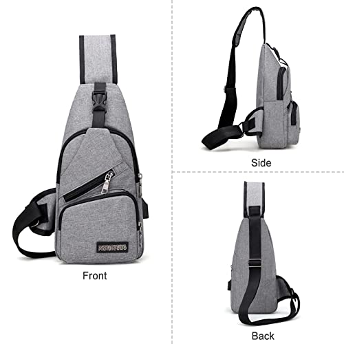 PORRASSO Men Sling Bag Small Shoulder Crossbody Bag with USB Chest Bag Daypack 2