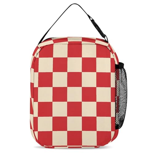 Red And Cream Plaid Checkered Funny Backpack Set with Lunch Bag And Pencil Case Lightweight Bags Sets 4