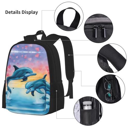 Dolphins In Love 3-Piece Set Backpack, Lunch Bag, And Pencil Case, Casual Cute Sets For Travel And College 6