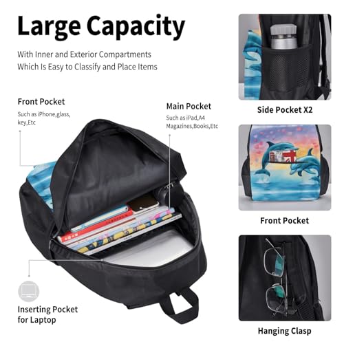 • Complete 3-Piece Set: This Dolphins In Love Set Includes A Spacious Backpack, A Practical Lunch Bag, And A Handy Pencil Case, Providing All The Essentials For Work Or Travel.