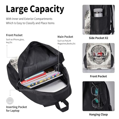 • Complete 3-Piece Set: This Mexican Skull Set Includes A Spacious Backpack, A Practical Lunch Bag, And A Handy Pencil Case, Providing All The Essentials For Work Or Travel.
