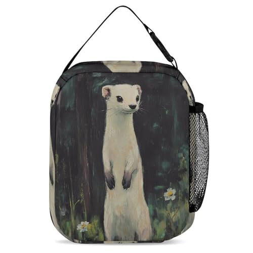 White Weasel Stoat Funny Backpack Set Lunch Bag Pencil Case Makeup Bag 3 in 1 for Men Women Travel 6