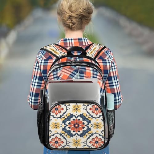 Boho Abstract Colorful Floral Clear Backpack for Stadium Events, Vintage Flowers Waterproof Clear Bag for Women Men Adult Sport Work Daily Music Festival and Concerts 1