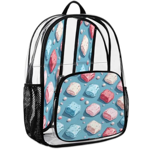 Cotton Candy Clear Backpack for Stadium Events, Dessert Waterproof Clear Bag for Women Men Adult Sport Work Daily Music Festival and Concerts 1