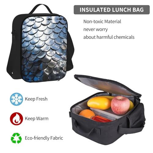 nanger Silver Fish Scale Print 3-Piece Set Backpack, Lunch Bag And Pencil Case, For Travel, College, And Daily Use 7