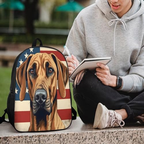 Rhodesian Ridgeback Dog American Flag Backpack Simple Leisure Travel Backpack Outgoing Daypack 17 Inch 2